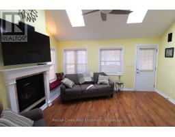 Amazing location! This stunning Royal Home is situated on one of the best lots at Meneset on the Lake, an adult lakefront community located just minutes north of Goderich. This fabulous home offers a partial seasonal lakeview and is located across the road from a forested area and path leading to the community's beachfront area! As you walk up to the inviting covered front porch, you will know you have found your new home! Step inside and you will be very impressed with the spacious interior including cathedral ceilings and gorgeous wood flooring. The impressive kitchen features newer premium appliances, an abundance of cabinets and several windows for lots of natural light. There is also a formal dining room, living room and stunning family room addition with cathedral ceiling, skylights and natural gas fireplace! Down the hall from the main living area is a laundry room with sink and primary bedroom with 3 pc en-suite bath and walk in closet. There is a spacious second bedroom as well. At the back of the home there is a deck for grilling, concrete patio, private fenced area and large shed/workshop. Services include forced air gas heating, central A/C, high speed internet and whole home generator. An added bonus is the entire roof was replaced in 2022 with long lasting metal. This is a great opportunity to acquire a beautiful home in a very desirable land lease community, complete with its very own club house and recreational activities! If that is not enough, several golf courses, walking trails and lots of shopping are available nearby in The Prettiest town of Canada! (id:50886)
