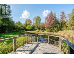 Just north of Hanover, this beautiful 2+ acre property offers privacy, space, and natural beauty. It features a raised bungalow, detached shop/garage, gazebo, pond, garden shed, gardens, all surrounded by a beautiful variety of trees. The 1993 raised bungalow features 2+2 bedrooms and 2 bathrooms. The main floor includes an open kitchen/dining area with patio doors to the deck, a living room with a large picture window overlooking the south covered porch, laundry room with outside access, 2 bedrooms, full 4 piece guest bathroom and primary bedroom with 3-piece ensuite and walk-in closet. The lower level offers a spacious family room with bar and sink, cozy propane fireplace, 2 additional bedrooms, and a utility room with walkout. Enjoy the outdoors from the large north-side deck with manual awning and propane BBQ hookup, or from the stunning post & beam gazebo (12' x 16') with 10' x 10' extension overlooking the pond and tree-lined yard. The detached steel clad heated/insulated garage (24' x 40') with propane heat and radiant heater provides an excellent workspace, complete with two 9'6 x 8' doors and a 12' x 40' lean-to (with access doors on each end). A garden shed (10 'x 16')with verandah (6' x 16'), extensive gardens, decorative brick fire pit area and greenhouse (negotiable) add to the property's appeal. With its mix of open space, trails through mature trees, and peaceful views, this property offers the perfect balance of country living just minutes from Hanover's amenities. (id:50886)