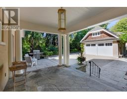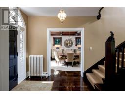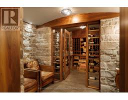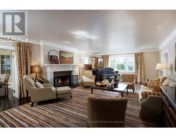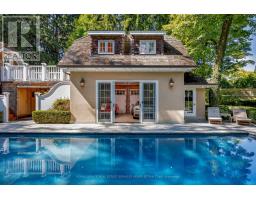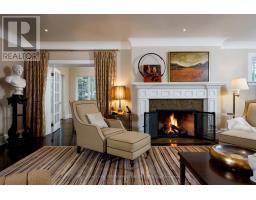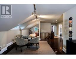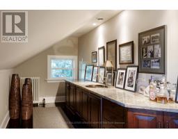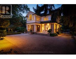 A landmark estate in St. George's Park. Privately set on one of Guelph's most prestigious streets, 75 Queen Street is a legacy residence of rare scale and architectural significance. This fully reimagined Dutch Colonial estate sits elevated on an 89 x 264-foot lot, surrounded by professionally designed grounds that have been meticulously cultivated and maintained for over 25 years. The exterior offers resort-quality living, with a saltwater pool, wood-burning fireplace, outdoor shower, and dedicated pool bathroom, framed by mature trees and layered stonework. The sense of privacy and serenity is immediate. Inside, the home spans over 5,700 square feet of finished space and follows a classic centre-hall plan with gracious flow and custom detail throughout. The main level includes a grand great room, formal dining room, glass-enclosed sunroom, chef's kitchen with granite surfaces and premium appliances, and a private office. Upstairs, the primary suite features two fireplaces, a walk-in closet, a five-piece ensuite, and a private balcony with hot tub. The third floor offers additional bedrooms, a large family room with wet bar, and elevated views of the gardens and city skyline. The fully finished lower level includes radiant heated floors, a home theatre, cigar lounge with ventilation, wine cellar, kitchenette, and full laundry. A detached garage and separate outbuilding provide parking for four vehicles, a sauna, a full bath, and two upper lofts that are ideal for guest accommodation, a studio, or a wellness retreat. In total, there is parking for 14 vehicles. All buildings are security-monitored and equipped with heat sensors, ensuring peace of mind and enhanced safety throughout the estate. Just steps to St. George's Park and within walking distance to downtown, the GO Station, and top schools, this property presents a rare opportunity to own one of Guelph's most iconic estates. Timeless, private, and built without compromise. (id:50886)