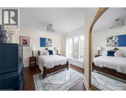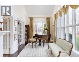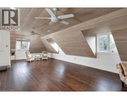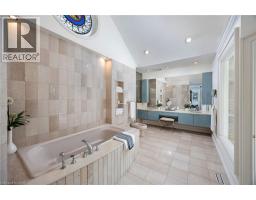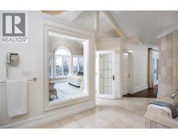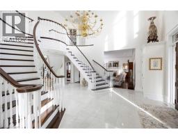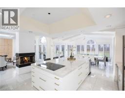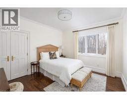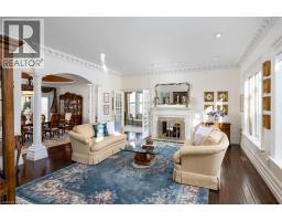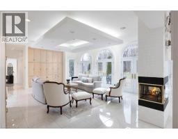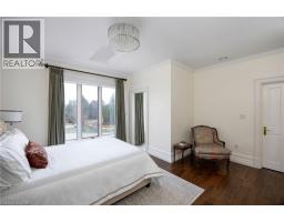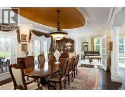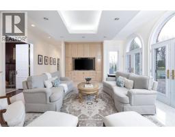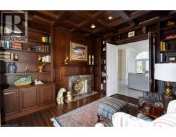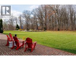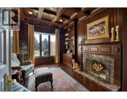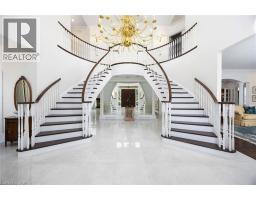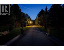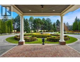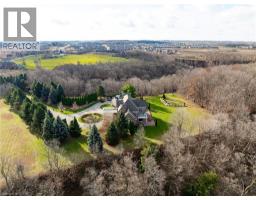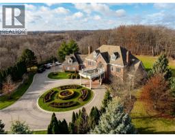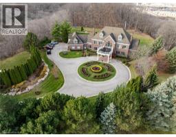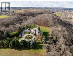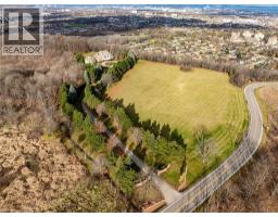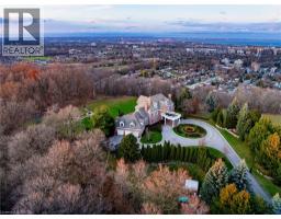Perched atop the Stoney Creek Escarpment and situated on a 16 pristine acres with over 1000ft of escarpment frontage, this stunning Georgian-style modern estate offers over 7,000 square feet of above-grade living space with sweeping views of Hamilton, Stoney Creek, Lake Ontario and even the Toronto skyline on clear days. Upon entering through the private gates and driving along the scenic driveway, you'll pass formal gardens before arriving at the impressive Porte Cochère. Stepping through the front doors, you're greeted by dual staircases and soaring 28-foot ceilings, creating an immediate sense of grandeur. The open, flowing floor plan seamlessly connects all formal rooms to the foyer. For professional needs, the oak-paneled office is conveniently located just off the foyer. The modern kitchen is equipped with high-end Thermador and SubZero appliances, perfect for both everyday meals and entertaining. At the rear of the home, the family area features expansive windows that offer breathtaking city views year-round. The luxurious primary suite includes a spa-like ensuite designed to indulge the homeowner, and a large balcony provides an uninterrupted view of the city. In addition to the Primary Suite, the second floor offers three additional spacious bedrooms, each with its own ensuite bathroom. Above the garage, the bonus room offers an ideal space for a teen retreat or in-law suite. This self-contained area includes a 3-piece ensuite and a kitchenette. The lower level features a gym and sauna, providing the perfect space to meet your fitness and relaxation needs. There's also a vast unfinished area providing an open canvas for your personal preferences. A rare combination of privacy, scale and panoramic beauty, this property is the ultimate retreat for those seeking both serenity and sophistication. Please connect for a comprehensive list of features. (id:50886)
