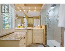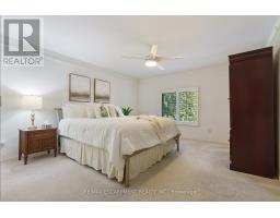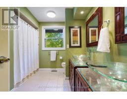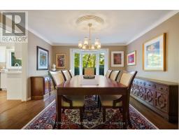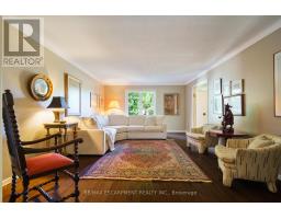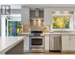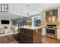Tucked away on one of Dundas' most desirable streets, this exceptional family home offers over 4,000 sq. ft. of beautifully finished living space backing onto a tranquil ravine setting. Perfectly positioned in a quiet, established neighbourhood known for its mature trees and strong community spirit, it combines natural beauty with timeless design and thoughtful upgrades inside and out. The curb appeal is undeniable, with meticulously landscaped gardens, an interlock walkway, and a long driveway leading to a double garage. Inside, sunlight fills the bright, open layout where rich hardwood floors and elegant finishes create an inviting atmosphere. The recently updated modern kitchen features quartz countertops, a textured backsplash, custom cabinetry with valence lighting, and a central island with a breakfast bar. It opens seamlessly to a sunken family room complete with a fireplace, built-in media wall, and walkout to the backyard oasis. This spacious main level also features a separate living and dining room, office space, powder room and inside access to the garage. Upstairs, four spacious bedrooms provide room for everyone. The serene primary suite includes a walk-in closet and spa-inspired 3-piece ensuite with heated floors and a glass shower, while the 5-piece main bath with double sinks ensures family convenience. California shutters throughout add both sophistication and privacy. The fully finished lower level extends the home's versatility with a large recreation room, wet bar, 2-piece bath (with potential to add a shower), and an additional room ideal for an office or gym. A walk-up leads to the private, fully fenced backyard featuring an in-ground pool, aggregate patio, cabana, and green space for children or pets to play. With peaceful ravine views, accessible walking trails from the back yard, and a setting that blends luxury with nature, this is more than a home-it's a retreat your family will cherish for years to come. (id:50886)