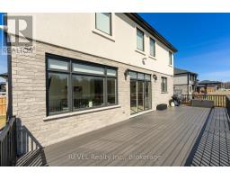 Luxury, style, and modern convenience define this stunning 2-storey stone & stucco home, built in 2022 and backing onto a tranquil retention pond. Thoughtfully designed with high-end finishes, this home boasts engineered hardwood flooring on the main and second floors, soaring ceilings, and oversized windows that flood the space with natural light.The open-concept main floor is perfect for both everyday living and entertaining. The spacious living room features an electric fireplace, while the chefs kitchen is a showstopper with extensive cabinetry, an oversized island with additional storage and seating, built-in appliances, and a striking herringbone backsplash. A butlers pantry with a prep sink adds functionality. A private office, 2-piece bath, and a mudroom with rear yard access complete this level.Upstairs, the primary suite offers dual walk-in closets and a spa-like 5-piece ensuite with a soaker tub and glass shower. Three additional bedrooms provide ample spaceone with a private 3-piece ensuite and walk-in closet, while the other two share a Jack & Jill 5-piece bath. A second-floor laundry room adds convenience.The finished basement (awaiting ceiling completion) features heated floors, a large rec room, oversized windows, and a 3-piece bath. This home is fully equipped with a built-in speaker system inside and out, a security camera system, and a sprinkler system for effortless lawn care.Outside, enjoy the fully fenced pie-shaped lot with a raised composite deck, perfect for entertaining. A oversized 2.5 car garage and a prime location in a growing Niagara Falls subdivision, close to shopping, amenities, and major highways make this home an exceptional opportunity. (id:50886)