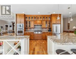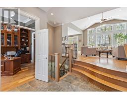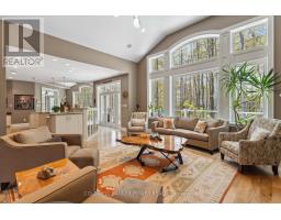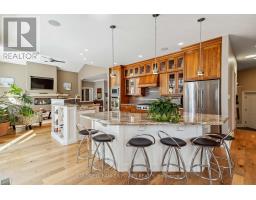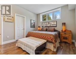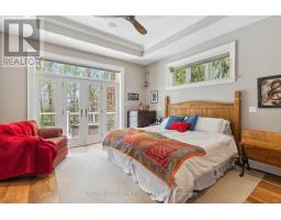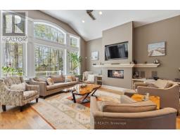 Stunning and exquisite ONE OF A KIND HOME' right out of House and Home Magazine with meticulous attention to detail and the highest of finishes. Constructed entirely of concrete forms (ICF-for efficiency and strength) by the renowned and exclusive builder 'Oke Woodsmith'. This home features heated floors on the entire main and lower level. Situated on nearly 3/4 of acre and adjacent to protected green space with a SEASONAL VIEW OF THE LAKE as well as deeded lake access. Just a few minutes from the famous lakeside village of Bayfield. Over 4000 square feet of luxurious living with elevated rear sundeck and FULL WALK-OUT lower level. Chef style kitchen featuring solid walnut cabinetry, granite countertops, Dacor built-in appliances, and stunning angled islands that flow to the dining room and outdoor deck for entertaining. The main level also features a stunning abundance of expansive windows, a grand foyer, private office/den with custom cabinetry, Muskoka room retreat, huge great room with gas fireplace, primary bedroom retreat with 2 way fireplace, designer walk-in closets and sumptuous walnut and marble ensuite with jet tub and separate shower, main floor laundry, hardwood flooring (no carpet!), oversized double car garage with unique and flexible storage system included. The fully finished lower level walk out features 9 foot ceilings, relaxing theatre area with automated projector system, 2 bedrooms and 2 bathrooms, and a climate controlled wine cellar! Beautifully landscaped and partially fenced lot. Far below any replacement cost...it is truly a dream home in beautiful setting. Recent updates include: new sewer grinder in 2020, new projector, dishwasher, and fibre optics in 2021, new washing machine and water tank in 2022, new heating boiler in 2023. See listing agent for extensive list of inclusions. (id:50886)