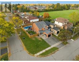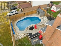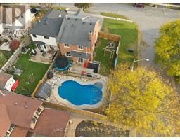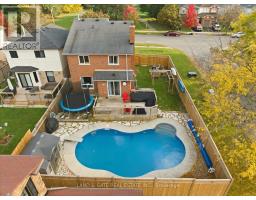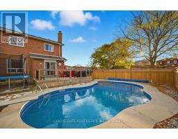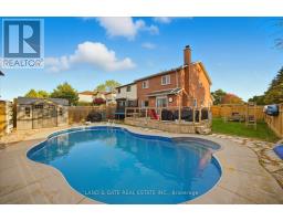 Welcome to this rarely offered, beautifully maintained 4-bedroom, 4-bathroom brick home with a heated inground pool, ideally situated on a quiet cul-de-sac across from a charming parkette. This spacious corner-lot property offers exceptional privacy and room to grow, featuring a full finished basement and thoughtful updates throughout. The main floor includes a bright kitchen with ample cupboard and counter space, updated cabinetry (2015), and hardwood flooring in the kitchen and family room (2018). A cozy gas fireplace warms the family room, while a real wood-burning fireplace adds charm to the dining area. The main floor also offers laundry with direct access to the garage and a newer glass-enclosed mudroom at the front entrance. Upstairs, four generous bedrooms provide space for the whole family. The finished basement includes an additional bedroom, a newer 3-piece bathroom (2025), and a gas fireplace-perfect for guests or entertaining. Step outside to enjoy the heated inground pool with a two-tiered deck (heater and filter 2022, pump 2021, liner 2023), a newly fenced yard (2023), and the added benefit of a side yard thanks to the corner lot. Additional updates include shingles and windows (2009), furnace and AC (2010). With parking for three vehicles and easy access to parks, schools, transit, shopping, and both the 401 and 407, this home offers the perfect blend of comfort, convenience, and charm in a sought-after neighbourhood. (Square footage as per MPAC Report. Room measurements as per photographer.) ** This is a linked property.** (id:50886)