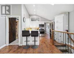 Stylish and sophisticated, this 2-bedroom, 2-bathroom open-concept bungalow has been fully renovated to impress. Featuring gleaming hardwood floors, vaulted ceilings, and a designer kitchen, every detail has been thoughtfully curated. The luxurious ensuite bath, modern pot lights, and neutral decor add to the homes contemporary appeal. Step outside to a sun-soaked newer deck, perfect for relaxing or entertaining. The beautifully redone front porch enhances the homes curb appeal, making a great first impression. Recent updates include eavestroughs, furnace, shingles, and newer appliances. Conveniently located near shopping, public transportation, and directly across the street from East Carling Public School. (id:50886)