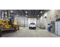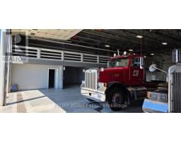 Located in Belleville just off Hwy 401 (Exit 538), this 7,650 sqft heavy vehicle maintenance building is in a prime, high-exposure location that offers exceptional accessibility for transportation and logistics operations. Included in the asking price is approximately 1-acre of land, providing space for parking or outdoor storage, more land is available if required (subject to additional pricing). This building would be an ideal space for a heavy truck maintenance and storage yard, a trailer marshalling yard, or a maintenance depot. The building features 6 overhead bay doors that are 16 ft x 14 ft, and 2 loading docks, making it ideal for large vehicle access. With a ceiling height of 17.5 ft to the truss and 21.2 ft to the roof deck, there is plenty of vertical clearance for heavy-duty operations. Additional highlights include floor drains on the north and south sides of the building with an oil separator, a compressor (Tenant's cost to maintain), 200 amp service, and a main hydro service backup generator. The property is also fully secured with 24/7 access. Asking rent includes all major operating costs - gas, hydro, water/septic, snow removal, realty taxes, building insurance, and security system. There are additional office spaces in the main building on site that are not included in the asking rent, but are available based on a Tenant's need. (id:50886)