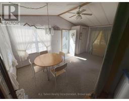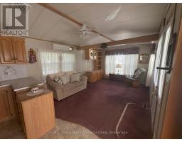 For Sale is this 1997 Huron Ridge four-season trailer. Here is a well-kept, one owner, one-bedroom, one-bath home located in Lighthouse Cove Trailer Park, a 55+ adult community. The interior floor plan consists of an open concept kitchen, living room with entertainment centre and a bright sunny 16x10 dining room with patio doors leading out to a secluded deck that wraps around to the front of the house. The home is heated with natural gas and the wall-mounted a/c unit cools the unit in the hot summer months. Appliances include a brand new gas stove, refrigerator, counter-top microwave and toaster oven. Outside you will find a paved double drive, a beautiful Mennonite-built shed perfect for a bunkie or your home handyman and a small utility shed. The lot is huge, on the desirable side of the park and awaits a new owner with the patience and green thumb to transfer it into a gardeners paradise. The park offers a community hall, swimming pool and access to Lake Huron. The monthly rent is only $345.77 with an additional $25 monthly fee for water testing. The last yearly tax bill was $122. This unit has been loved and well-maintained by the owner never seeing a pet or smoker in the home. With a little updating and creating landscaping, this home can be truly amazing. Call to schedule your private showing of this fabulous unit. (id:50886)