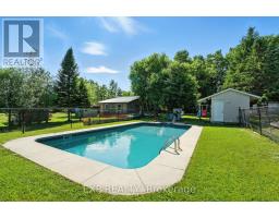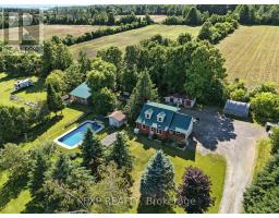 . Welcome to a property where nature, privacy, and lifestyle come together on nearly 5 acres of beautifully maintained land. Surrounded by mature trees and landscaped gardens, this is the kind of setting that invites you to slow down and enjoy every season. A winding path circles the home perfect for peaceful walks or cruising the grounds with a cart. Cool off in the inground pool, heated with solar panels and perfectly positioned for sun-filled summer days. Tinker, create, or store with ease thanks to the detached garage/workshop, three versatile sheds, and a small barn ideal for hobby farming or weekend projects. All around, vibrant gardens and greenery provide colour, life, and a sense of calm.Inside, the two-storey home features a classic brick façade and durable tin roof, offering both comfort and charm. There are three bedrooms, including one on the main level for added convenience, with walk-in closets. The heart of the home is the country-style kitchen, complete with a Sweetheart wood stove that adds a cozy, rustic touch. The unfinished basement gives you a blank canvas to expand the living space however you wish.Whether you're gardening, entertaining, or simply soaking in the quiet of country life, 7800 Highway 34 is a place where outdoor living takes centre stage and the possibilities are endless. (id:50886)