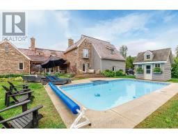 Rarely does a property of this caliber become available! Spanning 20 expansive acres just outside Thornbury and Clarksburg on Grey Rd. 13, this estate is a true gem. A newly paved, winding driveway leads you to a secluded residence thats been meticulously designed for comfort and style. The 3000+ square-foot home features a gourmet kitchen equipped with stainless steel appliances, honed marble counter tops, terracotta floors, and a fireplace surrounded by built-in cabinetry. The main floor primary bedroom boasts a generous en-suite bathroom and a spacious walk-in closet. The great room impresses with its soaring ceilings and another elegant fireplace. Currently serving as a music room, the formal dining area also includes a built-in office cupboard. Upstairs, you'll find two generously sized bedrooms, while the lower level offers a large gym and sauna. Several walkouts lead to a stunning 16x32 saltwater pool and a pool house. The cement pad is perfect for skating in winter and doubles as a pickleball court in warmer months. An attached double garage provides convenient access to both the main floor and lower level, while a detached 4-car garage with in-floor heating offers ample vehicle storage. The upstairs bonus space is finished, ideal for guest accommodations. A second winding paved driveway leads to the equestrian area, which features a remarkable 4-stall barn with hydro, water, and a spray-foamed loft. There are two paddock areas with shelters and a riding ring. A charming bunkie with tiered decking overlooks two picturesque ponds, and to complete this extraordinary property, the Beaver River gracefully flows along the entire western boundary! (id:50886)