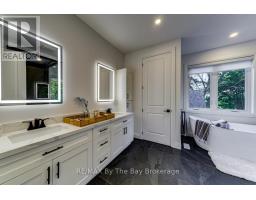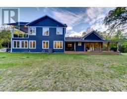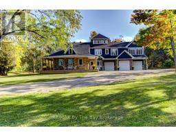 Private Luxury Country Estate Retreat on 2.1 serene acres in Clearview Township. Where refined living meets natural serenity. Surrounded by mature trees and picturesque views of shared and private ponds, this breathtaking property offers 4,500 sq ft of exquisitely finished living space and timeless architectural charm. Located on the south side of Poplar Side Road, on the Collingwood townline and within the sought-after Nottawa public school district, the setting is both secluded and convenient.Originally built in 1900, the home has been masterfully expanded with a 3,500 sq ft custom addition. A sweeping circular oak staircase greets you in the grand foyer, while engineered white oak floors and heated Brazilian slate tile add warmth and elegance throughout. Large casement windows bring in natural light and capture stunning views of the grounds.The custom kitchen (2025) features quartz waterfall countertops, Café appliances, a farmhouse sink, custom hood, and a walk-in pantry with a second sink, dishwasher, and ample storage. With four bedrooms and four bathrooms including two private ensuitesthe home is perfectly suited for both family living and entertaining. The primary suite offers a spa-like bath, walk-in closet, and private covered terrace with tinted glass railing and propane hook-up. Additional highlights include: Four-season sunroom with heat and A/C Sound-insulated office with private entrance and porch Third-floor observatory with panoramic windows. Second-floor bonus room off of the large living area has wet bar rough-in and deicated circuts for bar fridge and ice machine to easily turn into the ultimate entertainment room. In-floor heating in foyer, baths, Oversized 3-bay garage with EV outlet and heater rough-in Smart lighting, 16-camera security, spray foam insulation New well (2021) and septic (2024) Hardie board and stone exterior with soffit lighting. An exceptional country estate where craftsmanship, comfort, and natural beauty come together. (id:50886)