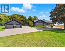 This updated, all-brick bungalow sits on a private 1-acre lot just north of Brooklin and minutes to Hwy 407 for a quick commute. Perfect for the car enthusiast, hobby mechanic, or anyone wanting serious garage space, the property features a 420 sq. ft. insulated & heated workshop for year-round projects, along with a massive 3-car garage (over 1,400 sq. ft. in total). Two electronic gated entrances provide secure access, parking pad, the circular driveway plus the laneway can easily accommodates 20+ vehicles, with room for trailers, toys, and guests. Stone steps and landscaped entry lead to a welcoming foyer that opens to light-filled living spaces highlighted by multiple built-in electric fireplaces and a spacious open-concept layout with modern updates throughout. The kitchen boasts abundant cabinetry, high-end stainless steel appliances, and a walkout to a huge deck with two gazebos overlooking the expansive lot, perfect for summer entertaining. Off the living room you will find the bright 4-season sunroom, featuring brand-new automatic blinds, a propane stove, wall AC, and 2 walkouts. Whether you're a plant lover looking for the perfect spot for your greenery, dreaming of a peaceful yoga or reading room, or wanting a serene office surrounded by nature, this versatile space invites you to relax and recharge.The primary bedroom includes an ensuite bath where the mirror has a built-in TV for catching up on your favourite shows while soaking in the tub, while the second bedroom offers his-and-her closets. The lower level provides even more living space with an open-concept rec room combined with a bedroom, laundry, and a large storage/utility room. With most updates completed within the last three years, this property is a rare find: an updated country retreat with the ultimate setup for car lovers, mechanics, or anyone craving a serious man cave and workshopall while enjoying the peace of country living just minutes from the city. (id:50886)