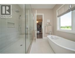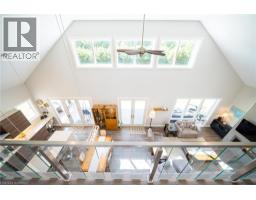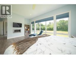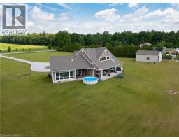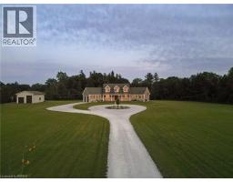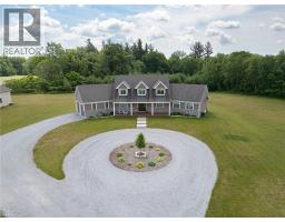 Welcome to your dream home in the heart of Norfolk County! Nestled on a picturesque 4.66-acre property, this custom-built masterpiece blends thoughtful design, modern luxury, and rural tranquility—just minutes from Norfolk’s beaches, trails, wineries, & local charm. A long driveway leads to this stunning Cape Cod-style home w/a large front porch. Step inside through a 41x96 solid mahogany door & be greeted by custom stainless steel & cut glass stair railings w/comfort-rise steps. The main level has 10' ceilings, 8' doors, European laminate flooring, & oversized Andersen windows & doors that flood the space w/natural light. A fireplace beneath a soaring 21' ceiling anchors the great room. The chef’s kitchen is a showstopper w/quartz countertops, European-style cabinetry w/pullouts & drawer-in-drawer systems, a double-door bar fridge, hands-free Moen faucet, & 5-burner propane range w/WiFi-connected hood. A massive island & custom pantry wall add both function & style. The main-flr primary suite has private access to the deck, hot tub, & above-ground pool, plus a fireplace, floor-to-ceiling windows, & huge walk- in closet w/chandelier & custom organizers. The spa-like ensuite includes heated floors, freestanding tub, 4’x6’ glass shower w/bench, double vanity, Riobel chrome fixtures, & quartz finishes. Also on the main flr is a versatile room for bedroom, office, gym, or playroom, a 2-piece powder room, & laundry room w/custom closets & ample workspace, accessible from both foyer & back hallway. Upstairs, a flexible loft overlooks the great room & could become a 4th bedroom. A full bath w/double sinks, quartz counters, & rainfall shower, plus a large front-facing bedroom, complete the level. Bonus: a detached shop w/insulated steel drive-through doors (10x14 and 10x10), 16’ ceilings, 60-amp panel, RV receptacle, Andersen windows, & fiberglass shingles. This 5-Star Plus Energy Rated home offers unmatched quality, peace, & privacy. A true Norfolk County gem. (id:50886)