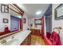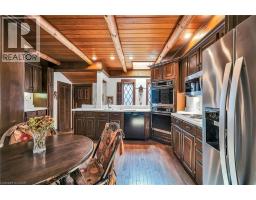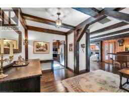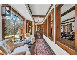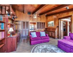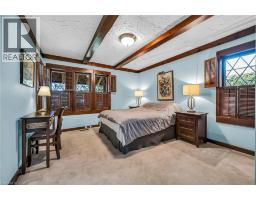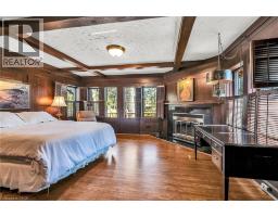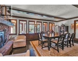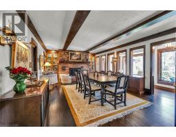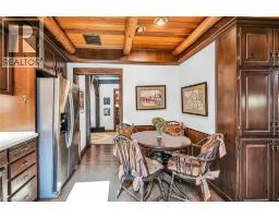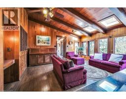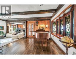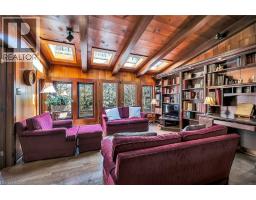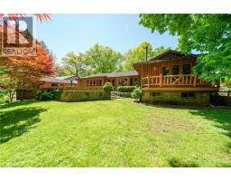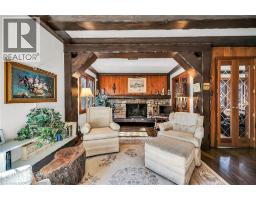 Same family over 50 years, lovingly cared for & maintained. This sprawling bungalow sits on a 100x 237-foot ravine lot. Inside you are invited into a generous living room with wood burning fireplace & ample space for a piano, the formal dining room has a wood burning fireplace & built-in cabinets, worthy of formal dinner parties or extended family gatherings. The eat-in kitchen flows through to the cozy, rustic family room with skylights, French doors & built-in bookshelves. The sun-filled walkway to the bedroom wing boasts several windows overlooking the beautiful rear yard & ravine. Primary bedroom with wood-burning fireplace, built-in wardrobes, 4-piece ensuite & private balcony. Two more bedrooms & 4-piece bathroom with main floor laundry complete this area. Before heading downstairs, there is an additional 4-piece bathroom & breezeway access to the garage. In the lower level of the home, you will find a recroom with yet anther woodburning fireplace, two rooms currently used as guest bedrooms, a 3-piece washroom & storage room. Outside-enjoy the tranquility of the ravine & all the privacy it offers. Enjoy the shade & solitude of the wraparound front porch on one of Aldershot’s most well-known streets. Stroll to the lake at the end of the street, the Burlington Golf & Country Club, LaSalle Park & Marina. This home is truly one of a kind. (id:50886)