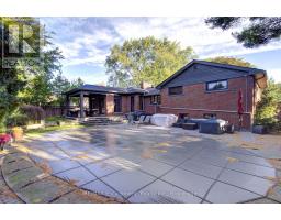 Nestled in the heart of Aldershot's coveted "Birdland" pocket, just steps from The Burlington Golf & Country Club, this luxurious 3 bedroom 2.5 bathroom home sits on a premium 90' x 107' mature lot and offers exceptional curb appeal. Professionally landscaped and equipped with an irrigation system, the grounds are as impressive as the interior. This unique, modified split-level design features just three steps and a pocket door separating the private bedroom wing from the main living area, offering both functionality and privacy. The open-concept main level is flooded with natural light and warmth and features expansive principal rooms-ideal for both everyday living and entertaining. The stunning white kitchen is a true showstopper, complete with quartz countertops, stainless steel appliances, and a large breakfast bar for casual dining. French doors off the dining area lead to a covered terrace that overlooks a beautifully landscaped backyard with an inviting heated inground pool -your own private oasis. The fully finished lower level with walk-up to outside offers even more living space. The space features: Terrazzo marble tile floors, a cozy wood-burning fireplace, a full bathroom, and flexible rooms to suit a variety of needs -from games room, to home theatre, guest suite to home gym. Additional highlights include: hooks ups for upper level laundry in bedroom closet, an elegant glass stair railing, a modern electric fireplace, a double garage with inside access and a prime location close to LaSalle Park, West Plains Bistro, the RBG, Aldershot GO Station, and more. This is an exceptional opportunity in one of Burlington's most desirable neighbourhoods! (id:50886)