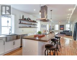 In the charming village of Singhampton, 1.5 hrs from TO, 20 mins to Collingwood, & Creemore, is this stately, red brick Century, full of character, rich in history dating back to the 1800s, on 0.31-acre lot w/ parking in the front plus rear access. Offering approx. 3600 sq.ft. of tastefully updated living space, this home has convenient C1 zoning w/ excellent street exposure and permits uses such as residential, personal service business, retail store, restaurant, vet clinic, & more! Last used as a recording studio w/ the family living quarters on the 2nd level, this layout suits a variety of creative endeavours ideal for multi-generation living. Original maple wood floors, pot ltg, a stained-glass focal point, 10 ft. ceilings w/ rustic wooden accent beams invite you in. The pine Kitchen has an abundance of workspace, quartz c-tops (24), travertine backsplash & SS appliances & is open to the large o/concept Living/Dining w/ gas FP & w-facing windows which flood this vast area w/ natural light. A large sliding door to a Family rm, has a sep entry to the front, excellent for in-home occupation. An office/bedrm has a closet & windows & a 3-pce bath completes this level. UPPER: Ren'd by Alair Homes in 2019, the 2nd level features refinished maple flring, a custom kitchen w/ a farmhouse sink, quartz & butcher block c-tops, tile backsplash, pot ltg, b-bar, has 4 large beds, 2 full baths, privacy & an open-concept layout + laundry. A door to the outside offers the pot. for a private deck or stairs down. Private backyard w/ deck (24). Approx. 34 ft. x 21 ft. barn/workshop w/ hydro offers 2 levels of workspace/storage. Endless possibilities & turn-key! Fabulous proximity to Devil's Glen Ski Club, Bruce Trail, Singhampton Caves, Hiking Trails, the Snowmobile Trail & Mylar & Loreta's rest. Front door (24), Generac & Panel (19), 2 Mitsubishi Zuba heat pumps (16), soffit, facia, eaves, attic insulation replaced (18), front door, on-demand HWH (24), Well pump (25) (id:50886)