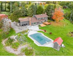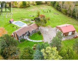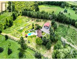 Live in peace and comfort away from city life but within easy reach of its conveniences. This 10-acre piece of the rolling hills of the countryside is less than an hour away from downtown Toronto and 35 minutes to Pearson airport. Enjoy a quiet walk by a large pond, interrupted by nothing but birdsong. Take in the summer scenery as you relax in the swimming pool in a hot afternoon. Watch that scenery transform into the majesty of autumn and then the cold peace of winter. Above you, the stars shine crisply in the clean dark night. When you have had enough of the stars for the night, retire to the privacy of your cozy house, deep in the middle of the lot, shielded on all sides by trees. Here, this is no vacation experience; it is everyday life, all on your own property. This property has been lovingly and skillfully maintained by the owner over the years, including extensive renovations and upgrades: Front gate (2024), Barn-garage (2019), Deck (2024), Interlocking (2024), House exterior( 2023), House roof (2023), House renovation (2024), Pool liner (2024), Well submersible pump (2023), Furnace (2023), Hot water tank (2024), Water iron & UV filter (2024), Fridge & Dishwasher (2024). (id:50886)