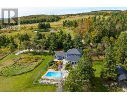 Set on 25 picturesque acres with sweeping views of the Mulmur Hills, this beautifully maintained century farmhouse offers the perfect blend of character and modern comfort. Inside, the home features a spacious open-concept kitchen and family room, ideal for gathering and entertaining, while still showcasing the warm character of its farmhouse roots and taking in panoramic views to the east and south. Large windows invite in natural light and frame the stunning countryside backdrop throughout. Upstairs features beautiful pine floors, laundry, and generous bedrooms. Step outside to enjoy the serene landscape, lush gardens, a sparkling inground pool, and expansive grounds that provide both privacy and endless opportunities to explore with an extensive trail system. The renovated drive shed works as pool house and extra storage space but could also be a fantastic workshop or hang out space. Whether you're looking for a peaceful escape, a place to host family and friends, or simply a connection to nature, this property delivers it all. A rare offering, this home captures the essence of country living with the convenience of being just a short drive to nearby Creemore, Mad River Golf, and both Devil's Glen and Mansfield Ski Clubs. (id:50886)