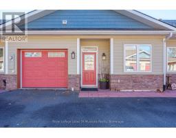 $550 MonthlyOPEN HOUSE Saturday Nov 8TH 10 am to 12 noon HARD TO FIND in town 2 bedroom one floor townhouse with NO STAIRS and ATTACHED GARAGE. 10-minute walk to vibrant downtown Huntsville for shopping and entertainment but located on a quite dead-end street. Great patio with beautiful view of town. Great for BBQing. The living dining room is open concept with 9 foot high ceilings with tongue and groove details, crown moldings and is highlight with a cozy gas fireplace. Spacious kitchen with peninsula breakfast bar showcases ample cabinetry with crown molding, gorgeous tile backsplash. Primary suite with a large window looking to the backyard, walk-in closet, and 5-pc ensuite bath including double sink vanity and soaker tub. Second bedroom with closet at the front of the house, plus a second full bathroom for ease with overnight guests. Heat type is radiant/in-floor & ductless cooling. ICF construction. Single heated garage with storage area, plus paved parking out front. Unit has lots of storage! Condo fees include Ground Maintenance/Landscaping, Parking, Property Management Fees, & Snow Removal Utilities average Gas $865/year Electricity $977/year Water $360/year (id:50886)