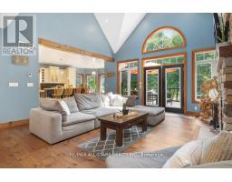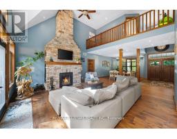 Welcome to Black Bear Estates, where luxury and nature converge. This magnificent 3,404 Sq/Ft home offers over 190 ft of private waterfront connected to the renowned Trent Severn Waterway. Featuring 6 bedrooms and 4 bathrooms, this home is designed for comfort and style. The main floor welcomes you with wide plank wood floors, 18 ft vaulted ceilings in the living room and a stunning floor-to-ceiling stone fireplace that sets the tone for relaxation. The open-concept layout also includes a large dining area, a gourmet eat-in kitchen, and main-floor laundry for convenience. The primary suite is a true retreat, with his-and-her walk-in closets, a spa-like 5-piece en-suite with a Jacuzzi tub, dual vanities and a glass walk-in shower. Step out onto the private deck to enjoy sweeping views of the expansive backyard and tranquil waterfront. Upstairs, you'll find two bedrooms, an oversized versatile bonus room, perfect for a bedroom, games room, or office. The walk-out basement adds even more living space with a large family room, games area, workout space, bedroom and bathroom. There's also a generous storage room and oversized mudroom with plenty of space to keep everything organized. Outside, the property offers a large backyard, perfect for outdoor entertaining with a beach like waterfront and private dock or quiet evenings by the fire. This home is ideal for those seeking a luxurious, peaceful lifestyle on the water. (id:50886)