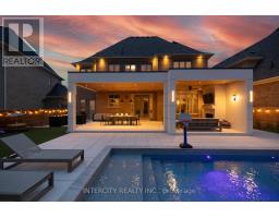 Welcome to 8 Larkin Ave, Luxury Living in Nobleton! This executive home sits on a premium 64 x 112 ft lot and offers 3,216 sq ft above grade finished plus 985 sq ft finished basement, along with over 550 sq ft of covered outdoor loggia featuring top-quality finishes throughout. Features include hardwood floors, pot lights, crown mouldings, open-to-above living room, and a chef-inspired kitchen with stainless steel appliances and large centre island. Upstairs boasts a primary suite with 4-pc ensuite & W/I closet, plus additional bedrooms each with their own ensuite. The fully finished basement includes a custom second kitchen and wine cellar. Enjoy resort-style outdoor living with an inground pool, custom loggia with built-in fireplace, outdoor living area, washroom, and shower. Located in one of Nobletons most prestigious communities, this home is the total package. (id:50886)
