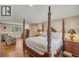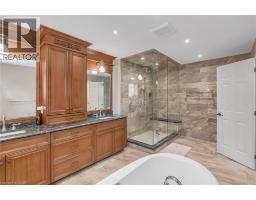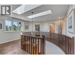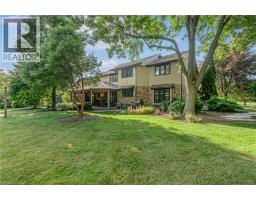 LUXURY-ONE ACRE LOT with a total living space of over 5400 sq. ft on municipal services. 4 Bed |2.5 Bath, custom-built home, steps from Lake Ontario | Fifty Point Marina. Thoughtfully upgraded-offers peace of mind. Over $150,000 in 2025: New Roof (50 yr warr) & Skylights, sump pump, freshly painted interior, renovated garage w/new epoxy-coated finished floor. Imported hardwood floors - touch of timeless elegance throughout. Soaring foyer exudes peaceful luxury. Chef’s eat-in kitchen-heart of the home, SS appliances, wine fridge, & luxurious granite countertops. Premium main floor family room w/soaring vaulted ceilings, a wood-burning fireplace w/natural brick surround offers an elevated layout rarely found. An impressive entertainment area, its architectural scale & warmth make it a standout highlight of the home. The expansive master suite, which includes a spa-inspired 5-piece ensuite w/a stand-alone tub, a rejuvenating spa shower, heated floors, & granite finishes, boasting a custom walk-in closet designed for the most refined tastes. Three additional bedrooms offer privacy & comfort for family & guests. The lower level offers a remarkable rec. space, complete w/pool table, mounted flat-screen TV & integrated surround sound system, gym & ample storage areas, w/ potential for conversion into an in-law suite. Large portico/BBQ area, al fresco dining & entertaining. Expansive backyard hosts a variety of trees, professionally landscaped, potential for further customization, create your dream outdoor oasis. The grounds are a masterpiece of nature, w/private sitting areas, & fire pit. The home also includes a 22,000 WT Generac generator. Conveniently located near top-tier amenities, QEW, easy reach of Toronto Airport and Niagara’s world-renowned wineries. This quiet cul-de-sac provides the ultimate family-friendly sanctuary. This is more than a home - it’s a lifestyle of peace, privacy, & unparalleled luxury with views of Lake Ontario. (id:50886)