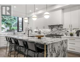 Welcome to 8 Manor Haven Road A Custom Home Across from the Park!This beautifully designed 4+1 bedroom, 6-bathroom home offers over 3500 sqft luxurious living in a prime family-friendly location. Built by Embe Constructions and designed by Shaun Lipsey, it features premium finishes and a thoughtful, functional layout throughout. The main floor features 10ft ceilings, pre-engineered hardwood floors, pot lights, and floor-to-ceiling inline windows that flood the home with natural light. Spacious principal rooms include a formal living room and a large separate dining room, ideal for entertaining. The chefs kitchen by California Kitchens is a true showstopper, equipped with top-of-the-line JennAir appliances, including a side-by-side fridge and freezer, two wall ovens, and a massive 10-ft island with ample seating. A dedicated prep space with drink fridge, paired with a huge walk-in pantry offer exceptional storage and prep space. The kitchen is open to the rear of the home, while remaining separate from the dining and living rooms. The family room features a cozy fireplace framed by a stunning floor-to-ceiling granite feature wall, creating a dramatic and welcoming focal point.Upstairs, you'll find four spacious bedrooms and three full bathrooms, including a primary retreat with a walk-in closet by Closets by Design and a spa-like ensuite with heated floors.The finished basement offers 1570 sqft includes a fifth bedroom, full bathroom, and a large open-concept rec space ideal for a home office, gym, or guest suite. A built-in bar adds flexibility for entertaining. Additional highlights include a heated mudroom, built-in Sonos surround sound, gas BBQ hookup, and a large private backyard. Located directly across from a park, this home delivers top-tier quality, comfort, and modern family living (id:50886)
