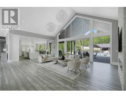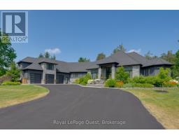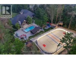 This incredible home seamlessly blends luxury and modern comfort for a dynamic dream lifestyle across more than 10,000 square feet of finished living space. Gourmet kitchen and a butlers pantry, massive living/dining space, soaring ceilings and a floor to ceiling wall of windows that opens to a private outdoor paradise. The primary bedroom is a serene retreat, complete with an electric fireplace and spa-inspired ensuite, huge walk in closet and sliding doors leading to the outdoor living space. Guests or inlaws will appreciate the beautifully finished loft suite and hobbyists will love the massive heated garage and workshop. The fully finished walkout basement is complete with games, gym with an ensuite, sauna, theatre room, 3 bedrooms (with 1 currently being used as a media/office room, and 1 being used as the gym), bathroom and tons of storage. The private resort-like backyard setting features beautifully landscaped grounds, a heated saltwater pool, hot tub, covered porch, wood-burning outdoor fireplace, and a cabana equipped with its own bathroom and wet bar. Enjoy friendly games of basketball, pickleball, or tennis on the multi sports court in the summer then watch it transform into your own private hockey/skating rink once the snow falls. This phenomenal home sits on over 2 acres of private enjoyment in the prestigious enclave of Midhurst and offers the best of indoor and outdoor living, thoughtfully designed for connection, fun and family memories year-round. (id:50886)