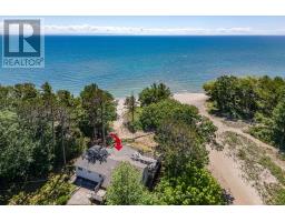 This property is all about that spectacular 180 degree view of the Bay and Blue Mountain beyond! With 3 sets of sliding glass doors on the water side of the house you will never lose sight of that beautiful beach. The 820 sq. ft. deck provides a wonderful backdrop for entertaining or simply enjoying the view and spectacular Georgian Bay sunsets. This cottage is full of character and with 3 bedrooms plus a den and office/storage room, there is ample room for friends an family. And if that isn't enough, this fabulous property comes with DEEDED OWNERSHIP in 6 waterfront parks! Very private and snuggled behind a small Township park, your view will never be blocked. Waterfront view without waterfront taxes. Municipal water. Septic bed was redone 2020. (id:50886)