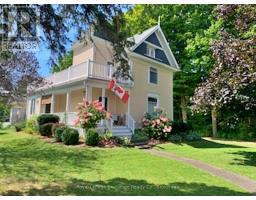 Exquisitely Updated Victorian Home: Welcome to 8 Queen St., a stunning masterpiece beautifully blends historical appeal with modern amenities. This Century Home, built originally in 1890 and complemented by a recent addition, boasts many modern updates and an attractive facade highlighted by a striking turret, two upper and lower wrap-around porches, newer vinyl siding with elegant cedar shake accents. Step inside to discover a bright and airy atmosphere, featuring a spacious open-concept dining room with a bay window alcove, a living room perfect for both relaxation and entertaining and knotty pine flooring. Central Air will keep you cool. Or - enjoy the warmth of a propane fireplace in the cooler months and efficient forced air gas heating year-round. The well equipped kitchen, breakfast nook and large pantry offers everything - even a garburator. The basement supplies abundant storage and work space. The foundation is beautiful stone and in excellent shape. With three-quarter acres of landscaped lot, this property offers privacy while still being conveniently located just a short stroll from downtown and local community services. The wrap-around porch (27') and balcony (40') plus two patios invite you to soak in the surroundings, making them ideal spots for morning coffee or evening gatherings. Additionally, the property includes a single detached garage and two practical outbuildings - a vintage outbuilding (24'X20') and a garden shed - that provide ample storage or project space. Experience the perfect blend of classic elegance and modern living in this exceptional property. Don't miss your chance to call 8 Queen St. your new home! (id:50886)