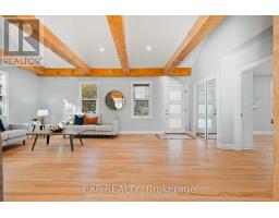 Remarks Public Remarks: Welcome to 8 Talbot Street, a stunning bungalow that combines modern comfort with timeless design, offering 2,969 sq. ft. of finished living space on just over an acre. With five bedrooms and three bathrooms, this home provides plenty of room for family living, entertaining, and guests. Step inside to an open-concept main floor that immediately impresses with its vaulted ceilings and exposed beams, filling the space with light and character. The stone electric fireplace serves as a beautiful focal point in the living area, while pot lights throughout add warmth and modern style. The kitchen is the heart of the home, featuring quartz countertops, stainless steel appliances including a hood range and dishwasher, and a large island perfect for gathering. The primary bedroom, located at the front of the home, includes its own side-door exit and a three-piece ensuite with a stand-up shower, creating a private and convenient retreat. The walkout basement extends the living space with two additional bedrooms, a full bath, and direct access to the outdoors-ideal for guests, extended family, or a recreation area. Outside, you'll find exceptional curb appeal and space to enjoy the outdoors. The backyard is fully fenced and features both a deck and lower patio slab, offering multiple areas for entertaining or relaxing. The two-entrance gravel driveway leads to an impressive six-car detached garage, providing parking for up to 14 vehicles-a dream for hobbyists or those needing extra storage. Set on a beautiful one-acre lot, this property delivers the perfect balance of privacy and convenience, offering the feel of country living while remaining close to local amenities, schools, and community attractions. With its inviting layout, modern finishes, and standout outdoor features, 8 Talbot Street is a rare find that truly has it all. (id:50886)