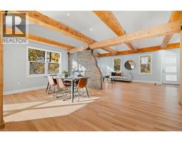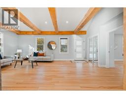 Welcome to 8 Talbot Street, a stunning bungalow that combines modern comfort with timeless design, offering 2,969 sq. ft. of finished living space on just over an acre. With five bedrooms and three bathrooms, this home provides plenty of room for family living, entertaining, and guests. Step inside to an open-concept main floor that immediately impresses with its vaulted ceilings and exposed beams, filling the space with light and character. The stone electric fireplace serves as a beautiful focal point in the living area, while pot lights throughout add warmth and modern style. The kitchen is the heart of the home, featuring quartz countertops, stainless steel appliances including a hood range and dishwasher, and a large island perfect for gathering. The primary bedroom, located at the front of the home, includes its own side-door exit and a three-piece ensuite with a stand-up shower, creating a private and convenient retreat. The walkout basement extends the living space with two additional bedrooms, a full bath, and direct access to the outdoors—ideal for guests, extended family, or a recreation area. Outside, you’ll find exceptional curb appeal and space to enjoy the outdoors. The backyard is fully fenced and features both a deck and lower patio slab, offering multiple areas for entertaining or relaxing. The two-entrance gravel driveway leads to an impressive six-car detached garage, providing parking for up to 14 vehicles—a dream for hobbyists or those needing extra storage. Set on a beautiful one-acre lot, this property delivers the perfect balance of privacy and convenience, offering the feel of country living while remaining close to local amenities, schools, and community attractions. With its inviting layout, modern finishes, and standout outdoor features, 8 Talbot Street is a rare find that truly has it all. (id:50886)
