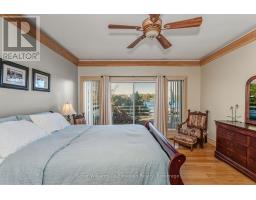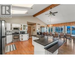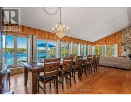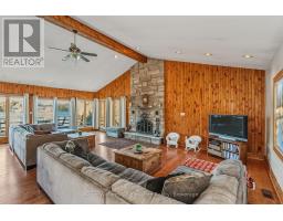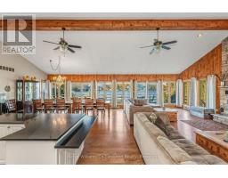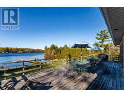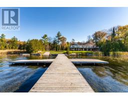 Live your dream on the coveted shores of Gloucester Pool. This rare property offers over 300 feet of pristine waterfront, blending the tranquility of cottage life with the sophistication of year-round luxury living. This four-bedroom, 4,100 sq. ft. residence is designed for both relaxation and entertaining. The open-concept living and dining area features vaulted ceilings, a majestic stone fireplace, and panoramic lake views that set an unforgettable scene. The chef-inspired kitchen boasts stone countertops, an island breakfast bar, and abundant cabinetry, perfectly balancing beauty and functionality. Down the hall, two guest suites open to the lakeside deck, while the primary suite offers an elegant ensuite, walk-in closet, and private walkout-ideal for enjoying morning coffee as the sun rises over the water. Throughout the home, solid wood doors, custom millwork, crown moldings, and marble countertops showcase fine craftsmanship and attention to detail. The walkout lower level expands the living space with a large family and entertainment area, fourth bedroom, additional bath, and convenient access to the garage and storage area. A sauna, wet bar, and wood-burning fireplace create the perfect retreat after a day on the lake or a cozy spot on a winter's evening. Outside, a mix of lush lawn and mature forest ensures peace and privacy. The expansive dock provides ample room for lounging or docking multiple boats, while a private boat launch offers effortless access to Gloucester Pool and the Trent-Severn Waterway-your gateway to endless boating adventures. This is a rare opportunity to own a timeless lakefront retreat where elegance meets natural beauty. Whether as a luxury cottage or year-round residence, this exquisite waterfront home invites you to live the lifestyle you've always imagined. (id:50886)