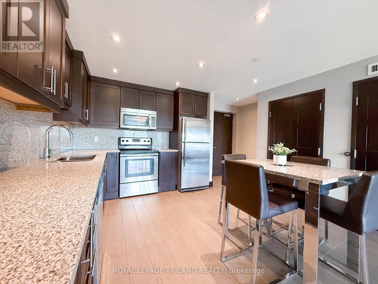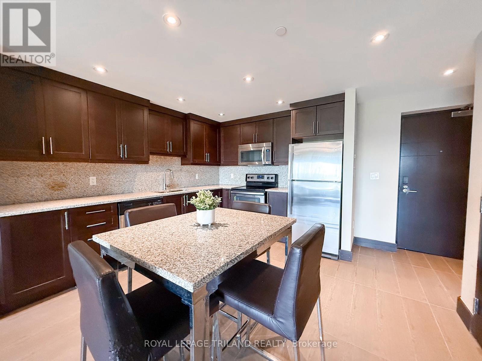 $538.51 MonthlyWelcome to one of the largest two bedroom units, approximately 1020 SF, in the complex and it comes with underground parking. This is the premier building for student accommodation. This is a low-stress investment opportunity. Welcome to The Luxe, London's premier destination for Western students looking for a newer building within walking distance to Western. Onsite Starbucks, billiards lounge, games room, 24 hour fitness centre, yoga studio, 40 person movie theatre, roof top patio, spa lounge, extensive security cameras, a study hall and a full time onsite staff. This unit accommodates 2 people and features a gourmet kitchen with granite, expansive floor to ceiling windows, it comes fully furnished and in suite controlled heating. Heat, water, central air all included in condo fee. Beautiful views of Ross Park, the Thames River and the Thames Valley Bike Trails. Unit is leased until August 26, 2026. (id:50886)