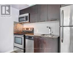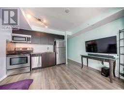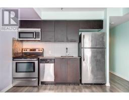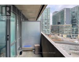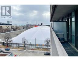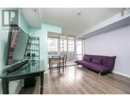 Bright and spacious one bedroom suite with a wide layout, big windows, and a full length balcony that fills the unit with natural light. The open concept living area has enough room for both a dining zone and an office setup, creating a functional space that is ideal for working or entertaining. The bedroom is generously sized and easily fits a queen bed with room for a dresser, giving you the comfortable layout you want in a downtown condo. Fuzion is a boutique sytly midrise building just off King West West with short elevator waits, great visitor parking, and a quiet residential feel only steps from transit, shops, restaurants, Liberty Village, and daily conveniences. Includes washer, dryer, fridge, stove, built in dishwasher, and all light fixtures. (id:50886)