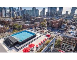 **Amazing Location!** Situated in the heart of King St W, this boutique building rarely offers units like this one. It features stunning views and a custom design, including a one-bedroom plus den layout with an open concept design. Highlights include a 9-foot exposed concrete ceiling, a rain shower, ample closet space, and a kitchen island with a "waterfall table" design, complemented by two-tone cabinetry and stainless steel shelving. The building amenities include a rooftop infinity pool and sundeck, 24-hour concierge service, and a gym. Perfect for entertaining! Includes parking spot and a spacious locker. Just steps to trendy restaurants, chic cafes, boutique shops, and vibrant nightlife, with easy access to transit and the waterfront. You don't want to miss out on this!! (id:50886)
