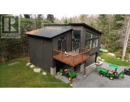 Built in 2023, this beautifully crafted home blends contemporary design with the peaceful charm of a forest setting. Nestled among the trees on a private one-acre lot, it offers the perfect balance of comfort, style, and practicality just 30 minutes from Huntsville. Step inside to an inviting open-concept living space featuring soaring cathedral ceilings, energy-efficient pot lighting, and large windows that frame tranquil views of nature. The kitchen is a chefs dream, equipped with a professional Wolf range and generous counter space for entertaining or everyday cooking. With two spacious bedrooms and two full bathrooms, each with its own large walk-in shower, the layout combines functionality with luxury. An extra-wide staircase easily accommodates a chair-lift, ensuring accessibility for all. The home's thoughtful features continue with a huge three-car garage, complete with in-floor heating, battery-backup garage door openers that can be operated remotely, and a full Generac generator for peace of mind. The main living level is warmed by efficient forced-air heating and air conditioning can be easily added for year-round comfort. Enjoy morning coffee or evening sunsets from the expansive decks at both the front and rear, surrounded by the quiet beauty of the forest. If you've been searching for a modern, energy-smart home with privacy, practicality, and just the right touch of luxury - this one checks every box. BONUS: part of the garage can be converted into an inlaw suite (roughed in)! This property is ideal for those who are interested in the outdoors. It is across from the OFC D trail and ATV trail. (id:50886)