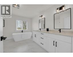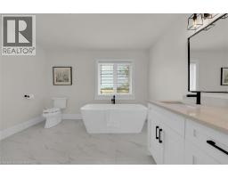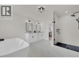 Rent to own option available. Luxury custom home built in 2023. Escape to the country with the convenience of all amenities just a short drive away! Minutes from Hwy 6 & Hwy 403, with quick access to shopping, restaurants and Hamilton Airport. The main floor features an open concept layout with a combination of engineered hardwood and tile floors, and an abundance of natural light. The den is situated at the entry of the home and provides a great work from home space. The kitchen offers quartz counters and backsplash, stainless steel appliances and a large island that is great for entertaining. There is also an upper level family room which is ideal for large and growing families. The stunning primary suite features a lavish ensuite with freestanding soaker tub and separate shower plus an enormous walk in closet. The upper level hosts 3 additional bedrooms, main 5 piece bath and a convenient laundry room. Enjoy the outdoors on your covered rear porch complete with scenic farm views. (id:50886)
