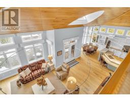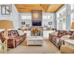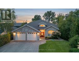 A spectacular custom built home on a beautiful 66' sandy, lakefront beach. Mature landscaping surrounds this 4700 sqft, 2 storey, welcoming home. Built by Bradstone in 2012, the detail & quality is impressive, with completely finished and functional living space and expansive patios and lawns with irrigation system. It is obvious that the home has been meticulously maintained. Lakefront is fully windowed and boasts magnificent views 365 days a year & in particular, the sunsets, from the open concept, cathedral ceilinged, family space. This space is enhanced with a grand, gas fusion fireplace with a polished limestone mantle. As you approach street side you will notice the designer stone exterior & interlocking pathway to the gracious entrance. From your first step into the grand foyer, with balcony above, you will enjoy an immediate view of the lake. As you tour the home you will notice many high end features which set this home apart, including, engineered hardwood flooring and ceiling, in floor heat, ceramic tile, elevator, many accessibility features including wide hall/door ways, automation controlled lighting and audio system throughout, power window coverings, electric kitchen drawers, stone counters, custom cabinetry, alarm system & automatic generator. The design has been intentional to offer main floor living if desired. The large primary bedroom offers dual walk in closets with impressive cabinetry & also a well detailed ensuite. Also on the main level is the open concept great room with dining & kitchen space with pantry, office, den with vaulted ceiling, 2pc bath, laundry room & utility room. Second floor offers a loft, ideal for a games space, 3 bedrooms, 4pc bath & an additional flexible large room (with sink) which could be used as a bedroom, workshop, gym, art studio or kids playroom. The attached oversized, 2 car, heated, insulated garage has a second stairway to the second floor living space. Park, tennis court & boat club within walking distance. (id:50886)