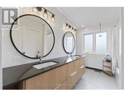 This tastefully updated family home in Alta Vista features elements of modern design without sacrificing comfort and day-to-day functionality. The main level has an inviting open-concept layout, starting with the foyer with large tile flooring, recessed lighting, and a stylish powder room. The expansive living room is highlighted by a full-height tiled fireplace, built-in shelving, and large windows that overlook the front yard. The adjoining dining area features a statement linear light fixture and rich hardwood flooring that flows throughout the level. The contemporary kitchen showcases two-tone cabinetry, quartz countertops, a waterfall peninsula with seating, and stainless steel appliances. At the rear, the sun-filled south-facing family room impresses with vaulted ceilings, multiple full-height windows, and sliding glass doors opening to the backyard, creating a wonderful space during all times of the day. Upstairs, the spacious primary bedroom features double closets and treetop views, while two additional bedrooms make for great children's or guest rooms. The 5-piece bathroom has a double vanity with quartz counters, wood cabinetry, geometric flooring, and a tub/shower combination. The finished lower level has a large recreation room with recessed lighting, a functional bedroom with an above-grade window, and a full bathroom with a glass shower and the laundry units. Outside, the private, low-maintenance backyard has an in-ground pool, stone patio, and mature trees offering privacy and shade. This property offers a family-friendly lifestyle with Billings Bridge, Lansdowne Park, and the Ottawa Hospital campuses nearby within just minutes. Evening strolls along these tree-lined streets await you! (id:50886)