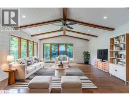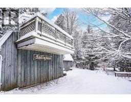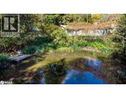ESCAPE TO 3.33 ACRES WITH A POND, FOREST TRAILS, & A HEATED BARN - LIVE, WORK, & PLAY WITH ENDLESS POSSIBILITIES! Discover a rare 3.33 acre retreat surrounded by lush forest with no direct neighbours, offering privacy and a tranquil natural setting just 5 minutes from the heart of Creemore with shops, dining, entertainment, and daily essentials. Perfectly positioned for four-season living, this property offers quick access to golf, hiking, and conservation areas, with Wasaga Beach and Blue Mountain Ski Resort just 30 minutes away. This charming renovated bungalow boasts a timeless stone exterior and durable steel roof, set on beautiful grounds with gardens, an expansive patio, winding forest trails, and a picturesque pond with a river and lush vegetation, creating a truly serene outdoor escape. A large heated barn that has many different uses and opportunities adds approximately 2,300 sq ft, and offers multiple rooms, an attic, a bridged walkway to the pond and home, and its own private driveway. Additional structures include a single garage, a garden shed, and a peaceful gazebo lounge area. Inside, soaring vaulted ceilings and walls of windows in the living room frame breathtaking pond and forest views, while the family room offers warmth with a cozy propane fireplace. The updated kitchen shines with a large island, coffee bar, and twin skylights, flowing seamlessly into a bright dining nook. The home offers two generous bedrooms and two full 4-piece baths, including a private primary retreat with a walkout to the yard. Further highlights include main floor laundry, an efficient on-demand water system, contemporary pot lighting throughout, and rich hardwood floors across the main living spaces. More than a #HomeToStay, this is a lifestyle - private, versatile, and filled with endless opportunities for living, working and playing in one extraordinary setting! (id:50886)