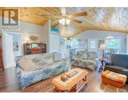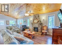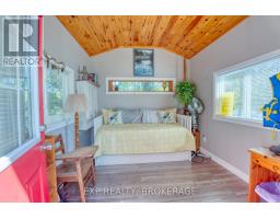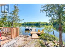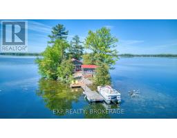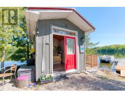 Private Island Retreat on Sharbot Lake! Escape to your own private island on one of the Frontenac's most desirable lakes. This modern 2-bedroom, 1-bathroom cottage offers an open-concept layout with pine ceilings, laminate flooring, and a cozy bunkie for guests. Fully insulated and powered by hydro, the cottage includes a premium Envirolet composting toilet, an upgraded gray water system, and an electric fireplace for added ambiance. Washer and Dryer hookup. Upgraded metal roof in 2023. Step outside to a comfortable deck with a remote-controlled awning, perfect for enjoying lakeside views in sun or shade. The bunkie also has hydro and screened windows, offering a bright, breezy retreat for visitors. Down by the shore, an upgraded floating dock provides easy access to the clear waters of Sharbot Lake ideal for swimming, boating and fishing. Offered furnished and ready to enjoy, with access via the public boat launch or nearby marina. A rare opportunity to own a modern, well-equipped island escape in the heart of cottage country. (id:50886)