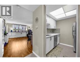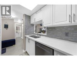 Discover this beautifully updated 1-bedroom + den suite in a quiet, well-managed building backing onto serene ravine trails. Flooded with natural light, this top-floor unit features an upgraded kitchen with stylish quartz countertops, modern cabinetry, and a sleek backsplash. Enjoy seamless living with laminate floors throughout, convenient ensuite laundry, extra storage space, and a private locker. Includes one underground parking spot. Perfectly situated close to Sheridan College, shopping plazas, public transit, major highways, and walking trails. A rare opportunity to own a bright, modern unit in a highly desirable location – just move in and enjoy! (id:50886)