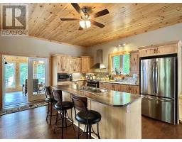Sure to impress! This stunning 2 bedroom, 2 bathroom bungalow located on tranquil Popeye Lake includes a detached garage with 3 bays (one separated)! Built in 2017, this custom home sits on 4.3 acres of primarily flat land with a gentle slope to the water offering 236 feet of shoreline!! No attention to detail has been spared and all rooms are generous in size. The main floor of this home is open concept and boasts a beautiful knotty maple custom kitchen with soft-closing drawers/doors, dining area, great room, and master bedroom including a walk-in-closet and an ensuite bath. The office is also a good size and could also be used as a third bedroom; dedicated laundry room. Your three season sunroom with access to a 50 foot walkout deck with glass railings! No expense has been spared with the mechanical and finishes of this home - GE appliances (including a GE profile dual fuel stove with bottom oven), engineered hardwood floors throughout with soap stone floors in the bathrooms, foyer, laundry and sun rooms, pine trim and doors throughout with pine tongue and groove ceilings throughout the main area, Hampton freestanding woodstove with a custom granite accent wall, custom roller shades, Canexel siding, Geld-wen windows, Kohler back-up generator wired into the house and two radon fans. Outbuildings include a lean-to off the garage, a skidoo shed complete with a hoist, a 'virgin' (newly built) bunkie ready to sleep four, an outdoor fire pit with cook stove and a private boat launch. Ready to host friends and family in an RV trailer with septic, hydro and water hook-ups. Don't miss out on this spectacular property, call and book your private viewing today! (id:50886)