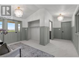 Out where the nights go quiet and the sky still turns gold at dinner hour, this double yellow brick country home sits on 1.88 acres, calm, finished, and ready for its next people. No renos. No projects. Just move in and start living. Inside, the home feels fresh and grounded. White walls, soft greens, and warm black and gold accents play off natural wood tones for that modern farmhouse feel. The kitchen is the kind that makes you want to cook again, with a massive quartz island, pot filler, and a door to the deck where you catch the sunset over the fields. Off the entry, the laundry room is both beautiful and practical, and the main floor bedroom doubles perfectly as an office. The living room opens to the kitchen so no one ever misses the game or the conversation. The bay window floods the space with golden evening light, while a tiled electric fireplace and reclaimed wood-beam mantle add cozy charm. Upstairs, the primary bedroom feels like a quiet retreat, airy, calm, and spacious enough for a king bed and sitting area. The upper bath is the true showstopper: a full wet room with an open-concept shower and freestanding soaking tub, tiled to the ceiling and accented with gold fixtures. Both bathroom vanities feature warm wood textures, including a stunning fluted double vanity that feels straight out of a design magazine. Outside, the lifestyle speaks for itself, natural gas heat in the country, fibre internet, mature trees, and open, flat land with room for a future shop, garden, or pool. The deck is updated, water and hydro are already run outside, and the double garage with inside entry is spotless. If you've been waiting to move to the country without inheriting someone else's projects, this is the one you simply walk into and start living. (id:50886)