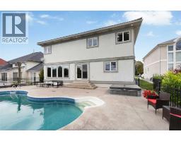 Welcome to this stunning waterfront home in South Windsor’s prestigious Southwood Lakes, offering approx. 3,000 sq. ft. plus a finished basement. This quality-built 2-storey gem has 3+1 beds & 3.5 baths. Main floor features a grand foyer with staircase, living room with fireplace, formal dining room, custom kitchen with SS appliances, an office, family room with stonewall 2nd fireplace and main floor laundry. 2nd level features a spacious primary bedroom with 5pc ensuite, walk-in & fireplace, 2 good sized bedrooms and a 5pc bath. Basement is finished with a rec area, 1 bedroom and 3pc bath. Outside is completed with a beautifully landscaped fenced yard with a heated in-ground pool, and a hot tub (as is) and breathtaking Lake Grande views, and a 2-car garage. Surrounded by scenic trails and close to the 401, top-rated schools, and all amenities, Updates include furnace, A/C, and HWT (2020). (id:50886)