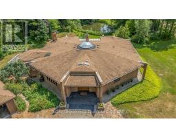 This truly is a property unlike anything you've seen before, hidden on 8 acres of complete privacy just outside of Drumbo. Welcome to Xanadu - this extraordinary 9-sided home, a marvel of Baha'i-inspired architecture. Pause to take a breath as you enter the central hall, where light, space, and geometry combine in a way that will stop you in your tracks. This grand room connects you to all 3,500sqft of the main floor living space, which includes 3 bedrooms, 2.5 bathrooms, a massive study or family room, sunroom, gourmet kitchen with built-in appliances, and a formal dining room that will leave you speechless. And did I mention the hidden staircase? Every room has been designed to frame a new view of the property's serene landscape, while the walkout basement makes it easy to extend your daily living into the outdoors. A large spring-fed Koi pond, private wooded trails, a detached garage, and a large shop create an estate that is both peaceful and practical. Crafted in steel and concrete with geothermal heating, this home is as enduring as it is extraordinary. Words honestly cannot describe this one - it must be experienced to be believed. (id:50886)