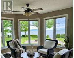 This custom-built, four-bedroom home, meticulously maintained by its sole owner, is positioned on a one-acre lot boasting 108 feet of pristine, private sand beach waterfront. The interior features a luxurious, well-appointed kitchen with a large center island and granite countertops. The home offers a practical split floor plan for optimal privacy. The opulent primary suite is a true retreat, offering spectacular water views, a five-piece ensuite bathroom, and a spacious walk-in closet. Enjoy serene mornings or spectacular sunsets from the bright sunroom, which provides direct access to the elegant stone patio and a fabulous outdoor entertainment area. Extensive stone patios and pathways lead directly to the beachfront. This exceptional property offers a rare combination of luxury, location, and craftsmanship. We invite you to experience the full array of premium features. Schedule your private viewing today. (id:50886)
