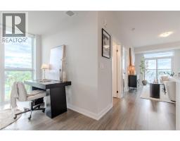 Stunning never lived in 1 Bedroom + Den 1 Bath unit. Be the first to live in this stunning suite, featuring modern, contemporary finishes. The spacious kitchen boasts brand new stainless steel appliances (fridge/freezer, over-the-range microwave, and dishwasher), ample counter space, and sleek cabinetry. The open-concept living area extends to a cozy den, perfect for a home office or extra living space. Key Features: In-Suite Laundry, Individual Thermostat. Geo-Thermal Heating and Cooling. Amenities: Bike storage room, fitness center, and smart parcel lockers. (id:50886)