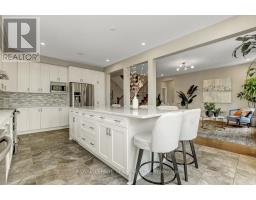 Modern and versatile floorplan - this exceptional home in the heart of Mahogany offers 4+1 bedrooms, 5 full bathrooms, and over 3,950 sf of thoughtfully designed living space on one of Mahogany's quietest and most desirable streets. The main floor features 9 ft ceilings, hardwood flooring, hardwood stairs to the second level, and a built-in speaker system. The designer kitchen includes quartz countertops, a 9 ft island/breakfast bar with seating for six, an abundance of shaker-style cabinetry, and opens to a spacious family room with a stunning floor-to-ceiling tiled gas fireplace. An elegant living room and formal dining area offer plenty of space for entertaining. A soundproof main-floor office/bedroom with a closet sits next to a full 4-pce bathroom, ideal for family members with mobility needs. Upstairs, hardwood continues through the hallway. The primary suite features large his & her walk-in closets and a spa-like 5-pce ensuite with an extra-long quartz double vanity, oversized glass shower, and freestanding tub. A second bedroom includes its own 4-piece ensuite and large walk-in closet, while two additional bedrooms share a 4-pce Jack & Jill bathroom. A huge laundry room with a sink adds everyday function and convenience. The finished, soundproof basement with high ceilings, oversized windows, spacious rec room, bedroom w/ egress window and closet, a 3-pce bathroom, and utility/storage space. Speaker wires are in place in the ceiling for a future sound system. The fully fenced backyard features a deck, tiled patio with gazebo, garden boxes, and green space for play. A widened tiled driveway and welcoming front porch complete this impressive home. Close to parks, recreation, and all the amenities the historic village of Manotick has to offer. Enjoy charming local shops, cafes, restaurants, and scenic river views just minutes from your doorstep. This thoughtfully designed home offers the space, comfort, and flexibility your family needs. (id:50886)