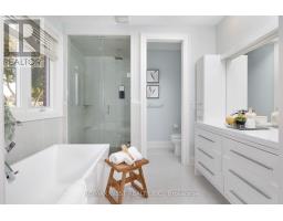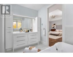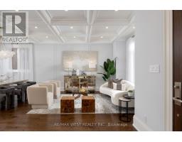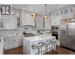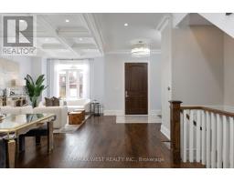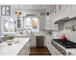This spectacular 4+2 bedroom, 6-bath home delivers on both function and finesse, with refined design details that elevate every inch. From soaring 10-foot ceilings and rich stained hardwood floors to Parisian-inspired trim and coffered ceilings, the craftsmanship is felt throughout. The main floor offers open, airy living with a newly fitted, stunning custom marble fireplace and a sun-filled family room, custom millwork, and a sleek gas fireplace that anchors the space. The gourmet kitchen is equally impressive outfitted with high-end Thermador appliances, a waterfall island, and custom cabinetry, all set beneath designer lighting and motorized window coverings. Upstairs, the primary suite is a true retreat, complete with a walk-in closet and spa-like ensuite with heated floors. Each additional bedroom features walk-in closets with custom built-ins and ensuite access, ensuring comfort and privacy for the entire family.The fully finished walkout basement includes a full-size kitchen and a private nanny suite, offering flexible space for multigenerational living or hosting. Outside, the professionally landscaped yard is framed by mature trees and enhanced by a brand new irrigation system, creating a lush, low-maintenance outdoor experience. The extra-wide interlock driveway and double garage offer everyday convenience with style.Ideally located just minutes to the downtown core, top schools, TTC subway, the upcoming LRT, and beloved local shops this is elevated city living, rooted in community. (id:50886)